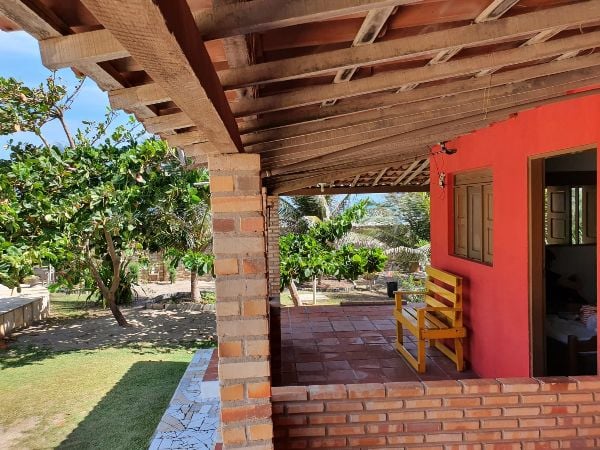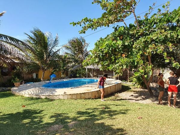 Pousada/Pension/Strandhaus: 50 Meter vom Strand, 9 Doppelzimmer in 2 Gebäuden, mit Klimaanlage, Dusche, Fernseher, Kühlbox, Terasse pro Zimmer, 1 Zimmer im Obergeschoß mit Balkon und Blick auf' den Atlantik, Swimmingpool, Gartenanlage